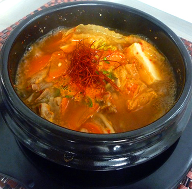 海鮮と牛すじを圧力なべで煮込んだダシが自慢の特製スープで煮込んだ、栄養満点のスンドゥブ!